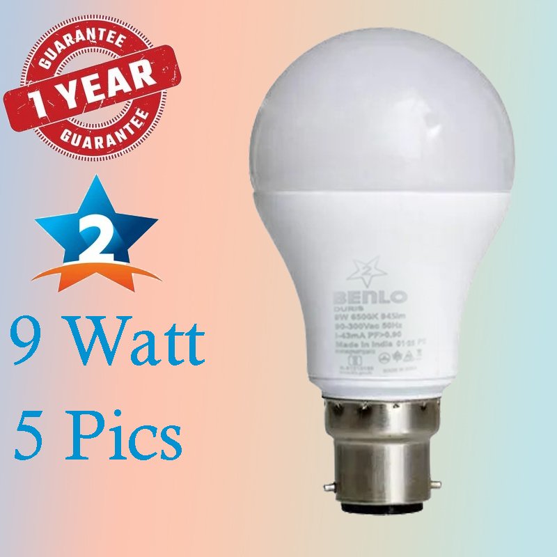 The Benlo 9W LED Bulb (Pack of 5) offers long-lasting brightness with exceptional energy efficiency. Designed to reduce electricity consumption, these bulbs deliver a cool, clear light ideal for homes, offices, and commercial spaces. Each bulb is crafted with quality materials to ensure durability and consistent performance. With a 1-year guarantee, Benlo assures you of reliability and satisfaction.