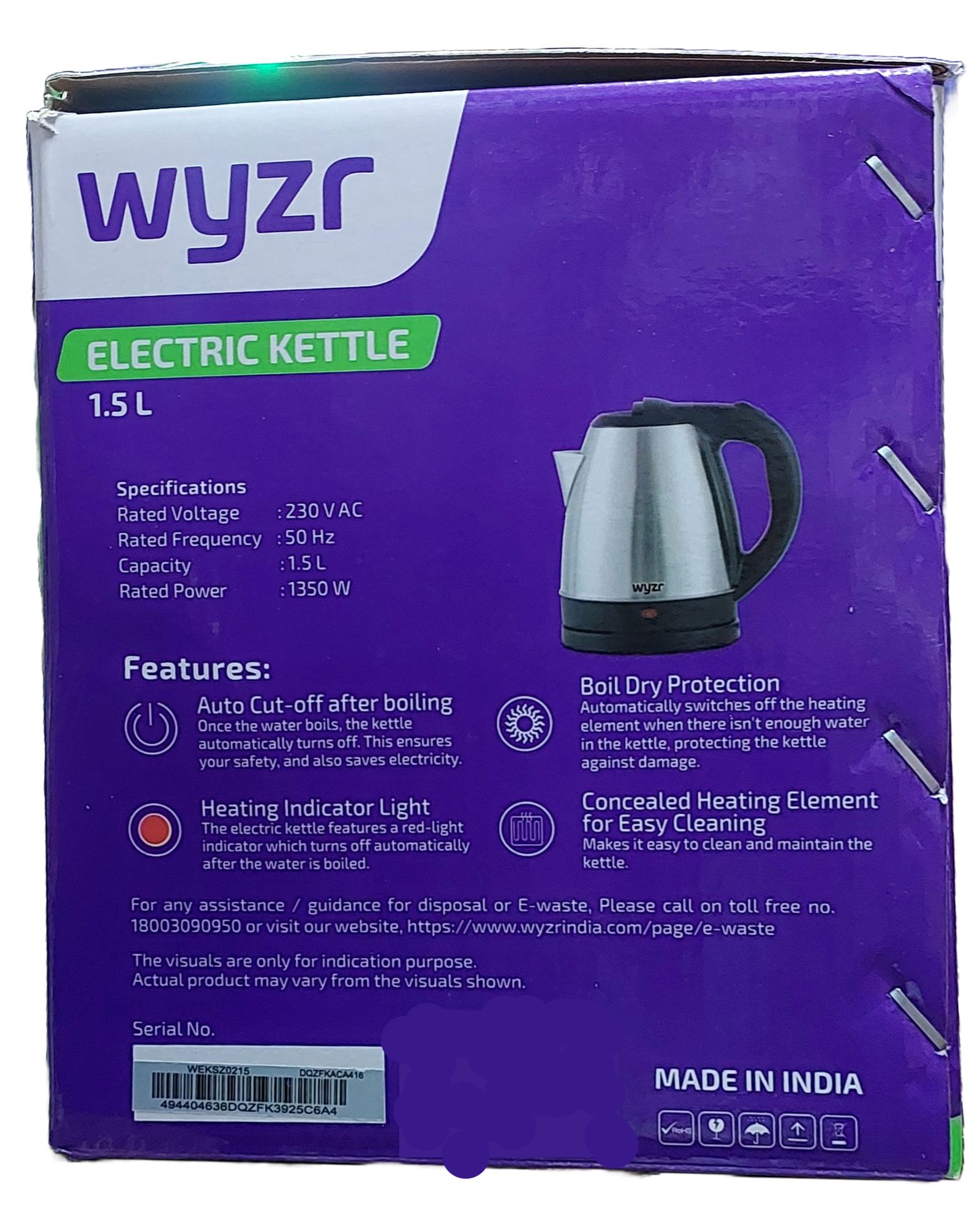 The Wyzr Electric Kettle is a stylish and efficient kitchen appliance designed for rapid boiling. With a powerful heating element, it quickly brings water to a boil, making it ideal for tea, coffee, and other hot beverages. The kettle features a generous capacity, a 360-degree swivel base for cordless convenience, and an easy-pour spout. Safety is prioritized with an automatic shut-off feature and a cool-touch handle.